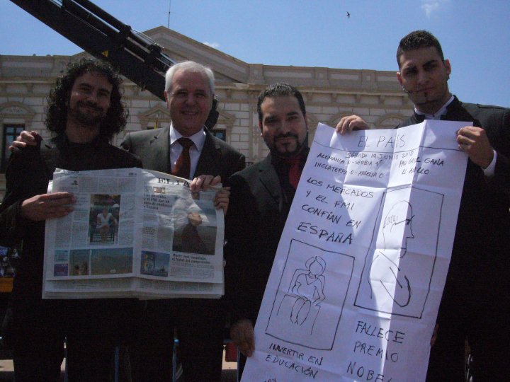Tras corroborar la integridad del mismo y sus firmas, procedió a abrir el sobre y desplegar la predicción. Esta consistía en una pancarta en la que estaba dibujada la portada y contraportada del diario el país. En esta pancarta, figuraban aciertos como el fallecimiento de un premio Nobel, la derrota de Alemania frente a Serbia, el empate de Inglaterra y Argelia, la confianza dada a España por los mercados financieros y la inversión en educación como reflejaba la contraportada. ¡RETO CONSEGUIDO!